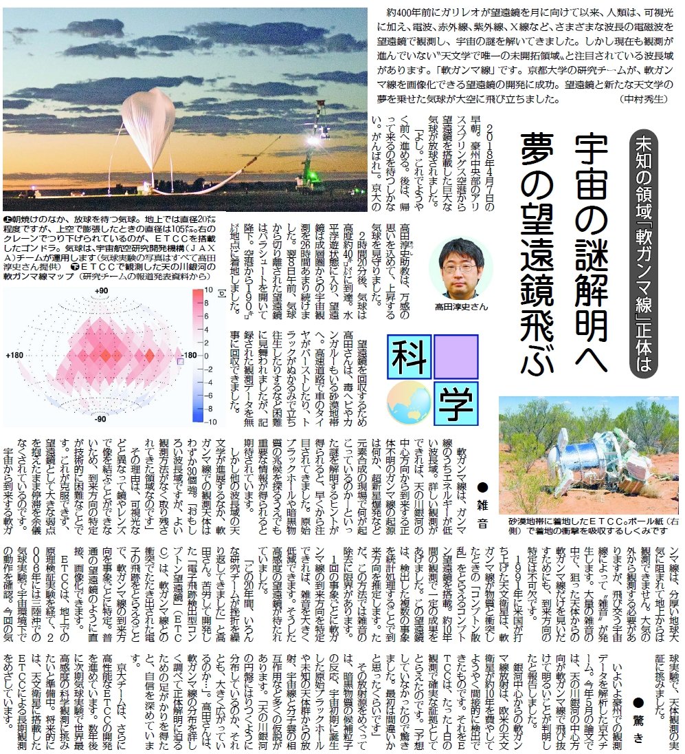 | 2022 | 高田 淳史 | 気球による銀河中心からの初の放射線(軟ガンマ線)の直接検出に成功 | プレスリリース しんぶん赤旗 |